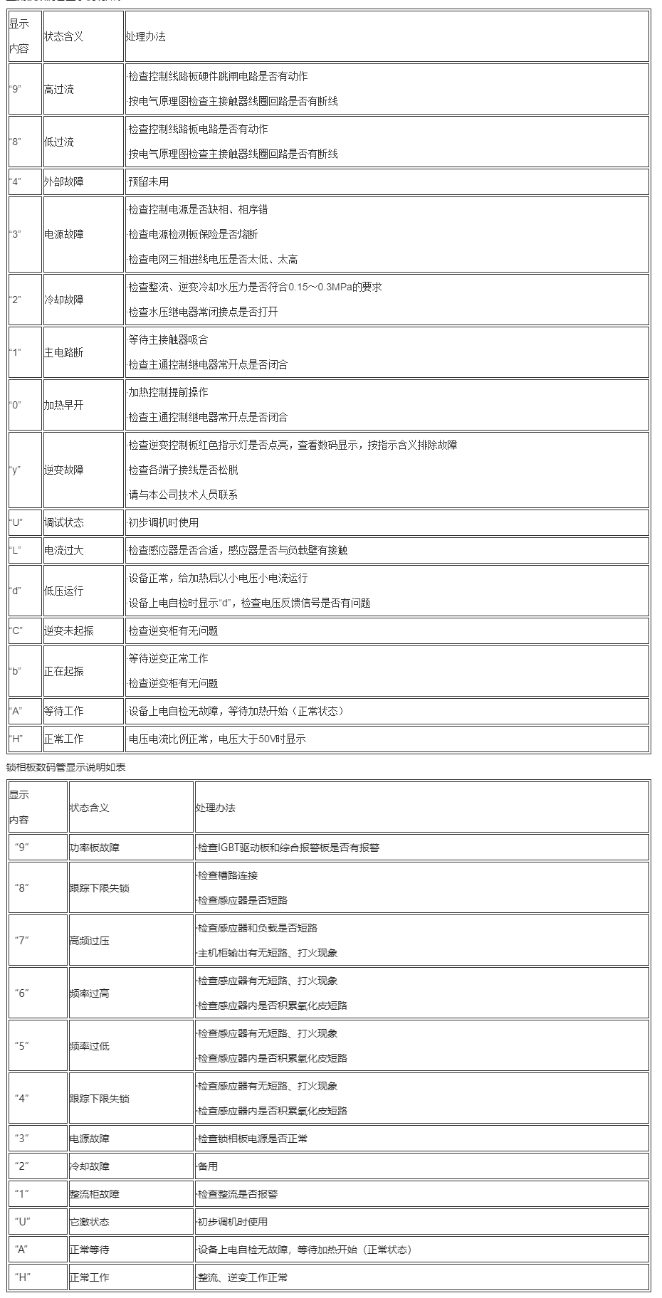 整流板數(shù)碼管顯示說明如表